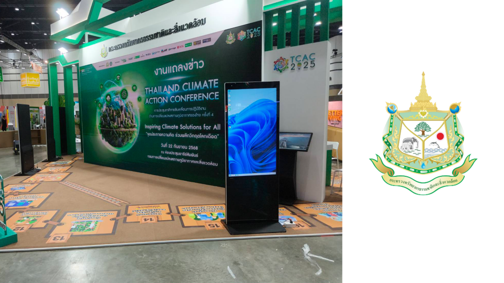 งานติดตั้งจอเช่าให้กับกระทรวงทรัพยากรและสิ่งแวดล้อ โดยเป็นจอ Digital Signage Kiosk ระบบ Windows ขนาด 49 นิ้ว จำนวนหลายจอเพื่อติดตั้งทั้งในส่วนของนำเสนอ Video Presentation และเกมส์ บนตัวเครื่อง เพื่อให้ผู้เข้าชมงานได้มีส่วนร่วมกับกิจกรรม