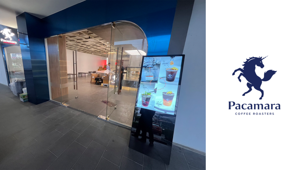 งานติดตั้งจอ Digital Signage ขนาด 43inch แบบ Portable Design ให้กับร้านกาแฟ Pacamara สาขารามคำแหง พร้อมซอฟต์แวร์ Signnex On-Cloud เพื่อช่วยให้ส่วนกลางสามารถสั่งเปลี่ยน Content ควบคุมการแสดงผลโฆษณาจากส่วนกลางได้อย่างง่ายดาย