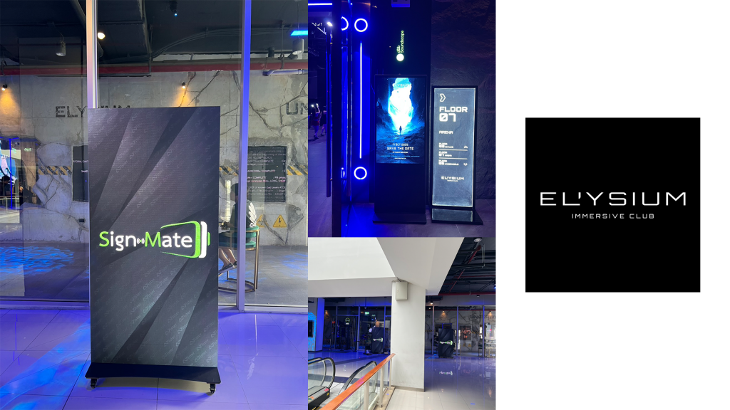 งานติดตั้ง Digital Signage Player + Software SignMate ให้กับ Elysium Immersive Club (ในห้าง Bravo BKK) โดยลูกค้ามีจอเดิมอยู่แล้ว แต่ไม่สามารถใช้งานระบบเดิมได้ จึงติดตั้งซอฟต์แวร์ SignMate เข้ากับจอเดิม เพื่อกลับมาควบคุมจอโฆษณาที่อยู่ใน Club ทั้งหมดผ่านส่วนกลาง