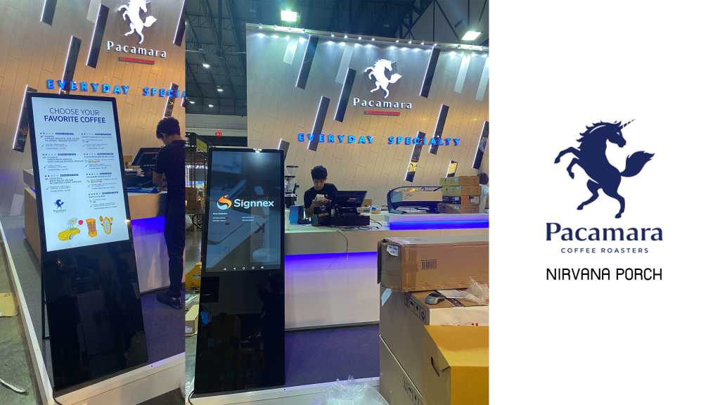งานติดตั้งจอ Digital Signage ขนาด 43inch แบบ Portable Design ให้กับร้านกาแฟ Pacamara ให้กับสาขาใหม่ Nirvana Porch กรุงเทพกรีฑา พร้อมซอฟต์แวร์ Signnex On-Cloud เพื่อช่วยให้ส่วนกลางสามารถสั่งเปลี่ยน Content ควบคุมการแสดงผลโฆษณาจากส่วนกลางได้อย่างง่ายดาย