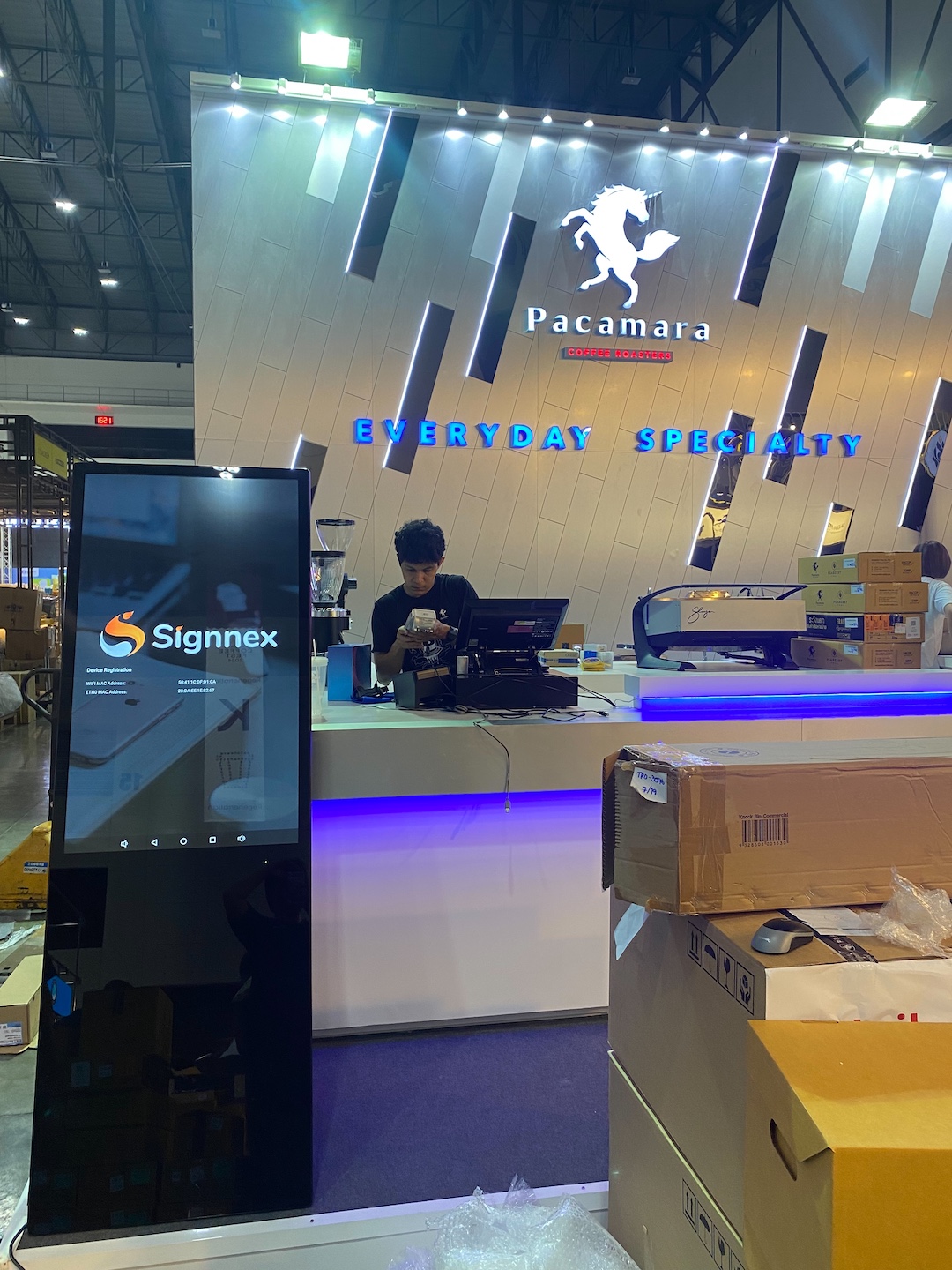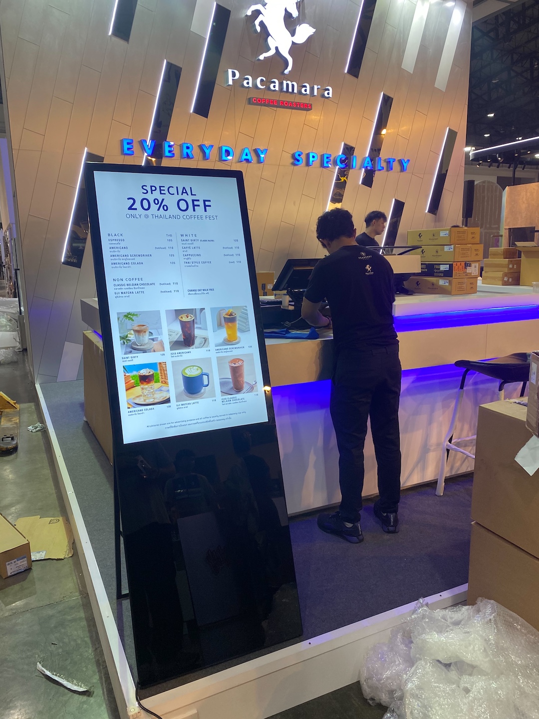 งานติดตั้งจอ Digital Signage ขนาด 43inch แบบ Portable Design ให้กับร้านกาแฟ Pacamara ให้กับสาขาใหม่ Nirvana Porch กรุงเทพกรีฑา พร้อมซอฟต์แวร์ Signnex On-Cloud เพื่อช่วยให้ส่วนกลางสามารถสั่งเปลี่ยน Content ควบคุมการแสดงผลโฆษณาจากส่วนกลางได้อย่างง่ายดาย