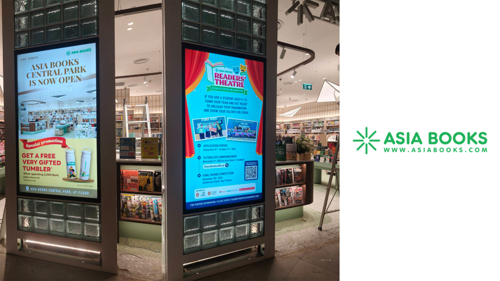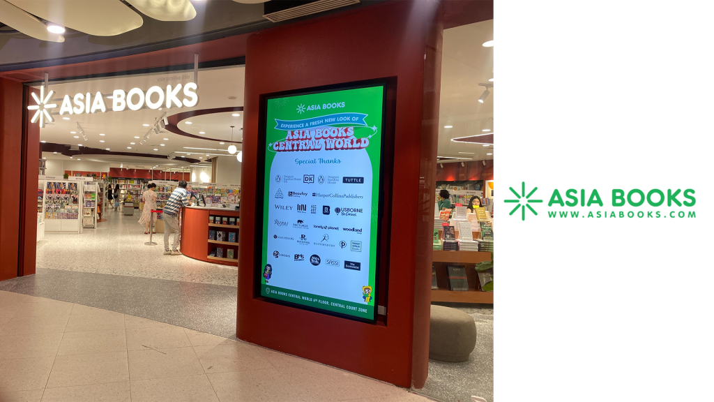 งานติดตั้งจอ 86inch Digital Signage Wallmount ให้กับ Asia Book สาขา Central World พร้อมฟรีซอฟต์แวร์ MuScreen On-Cloud สำหรับควบคุมสื่อโฆษณาผ่านส่วนกลางได้อย่างสะดวกสบาย