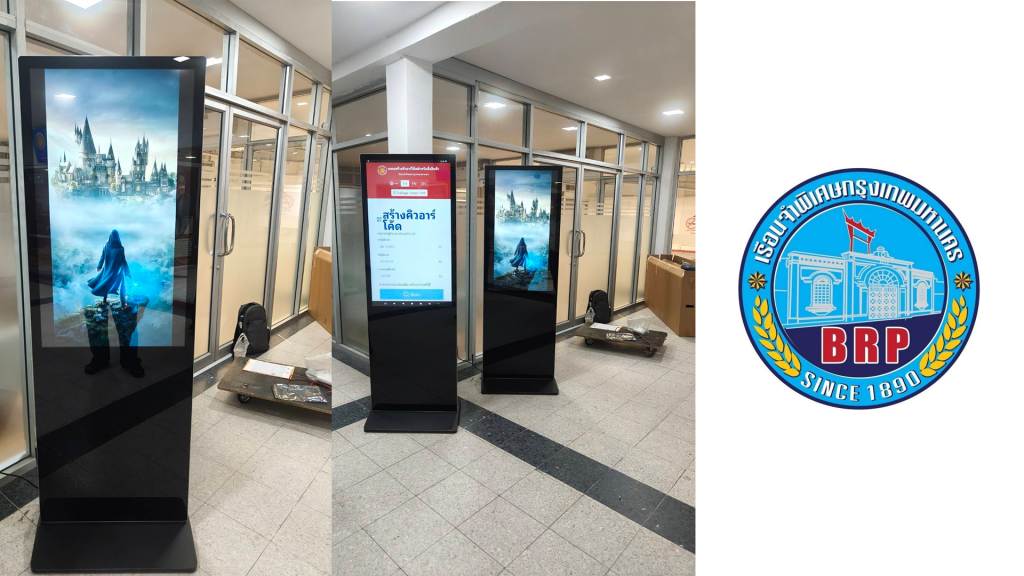 งานติดตั้งจอ Digital Signage Kiosk แบบ Rotating Screen Kiosk ขนาด 43 นิ้ว แบบสัมผัสระบบ Android พร้อมซอฟต์แวร์ MuScreen On-Cloud เพื่อควบคุมสื่อประชาสัมพันธ์ผ่านส่วนกลาง เพื่อใช้ประชาสัมพันธ์ข้อมูลภายในโรงเรียน
