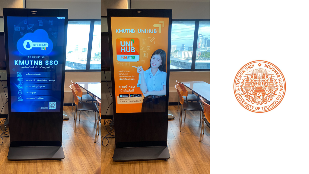 งานติดตั้งจอ Digital Signage Kiosk ขนาด 55 นิ้ว จำนวน 1 จอพร้อมซอฟต์แวร์ MuScreen เพื่อควบคุมสื่อประชาสัมพันธ์บนจอ Kiosk ทั้ง 2 เครื่องนี้ผ่านส่วนกลาง (Cloud)