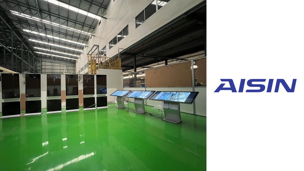 งานติดตั้งจอ Digital Signage Kiosk แบบ Rotating Screen Kiosk และแบบ K-Stand แบบสัมผัส ระบบ Windows เพื่อใช้ประชาสัมพันธ์ข้อมูลภายในโรงงาน โดยใช้งานร่วมกับซอฟต์แวร์ Signnex On-Premise เพื่อใช้ออกแบบ Content ในรูปแบบ Interactive