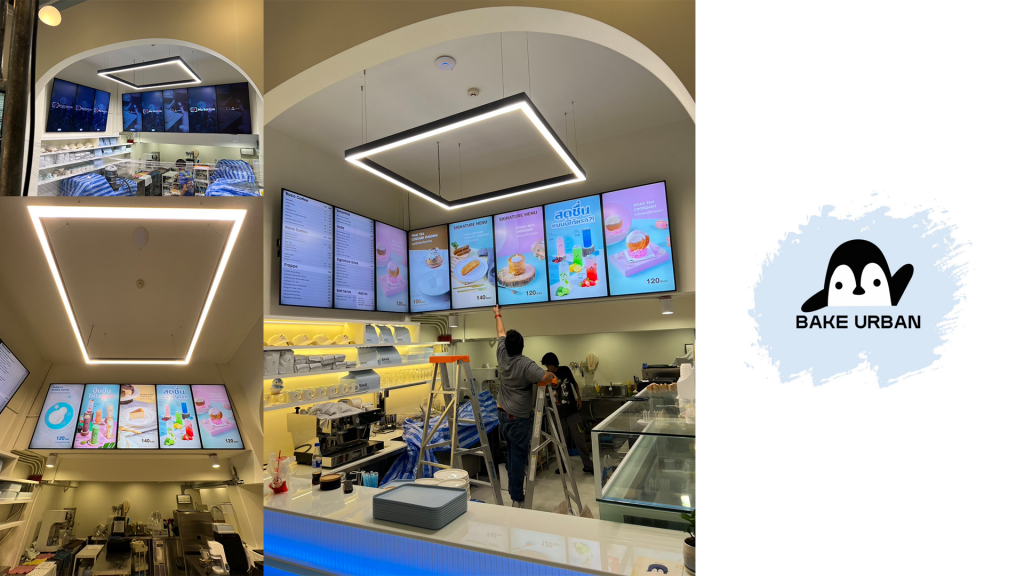 งานติดตั้งจอ Digital Signage แบบจอแขวนขนาดหน้าจอ 75inch พร้อมซอฟต์แวร์ MuScreen สำหรับควบคุมจอโฆษณาผ่านส่วนกลาง ช่วยให้ส่วนกลางสามารถควบคุม Content ได้ทุกสาขาพร้อมกันผ่านอินเทอร์เน็ต